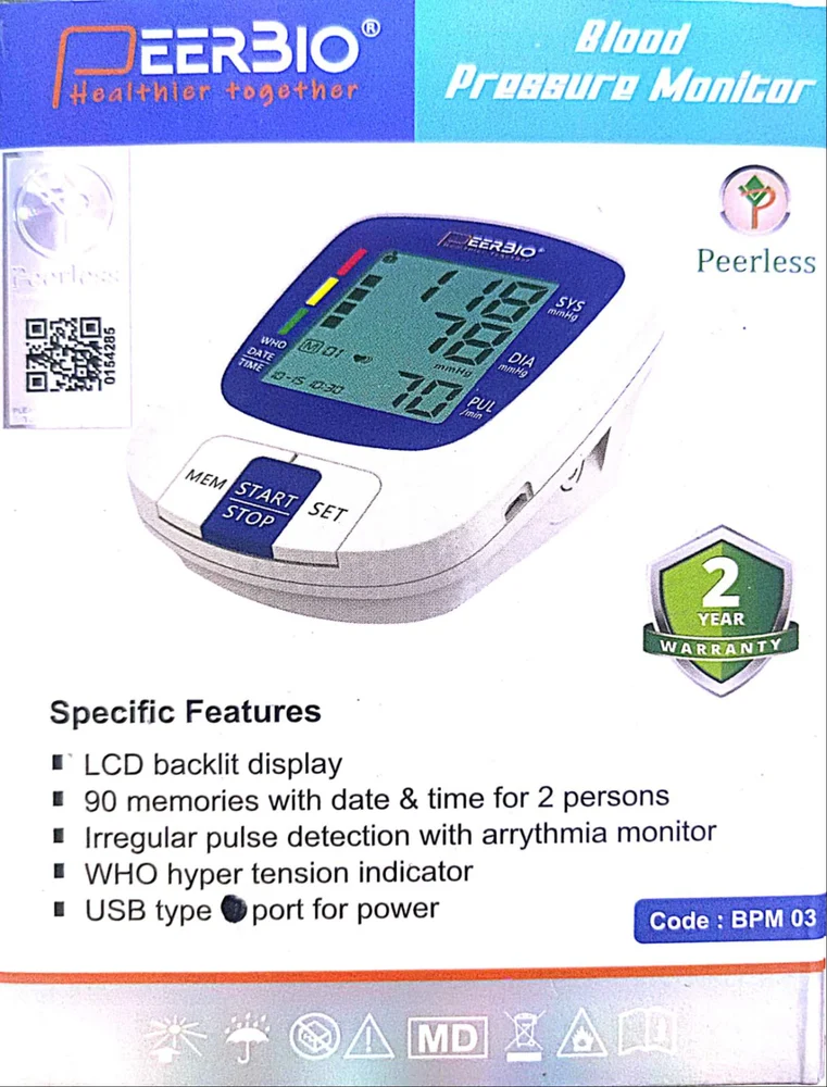 Product DetailsName : PEERBIO Blood Pressure Monitor BPM03